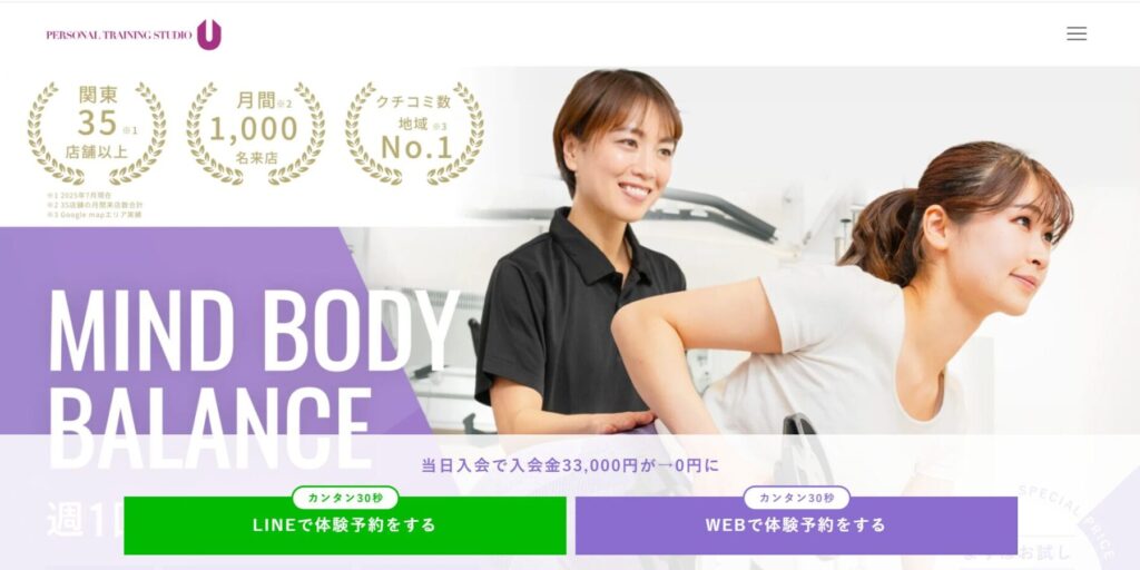 | PERSONAL TRAINING STUDIO U | 月4回 39,600円/月 | マシンパーソナル |