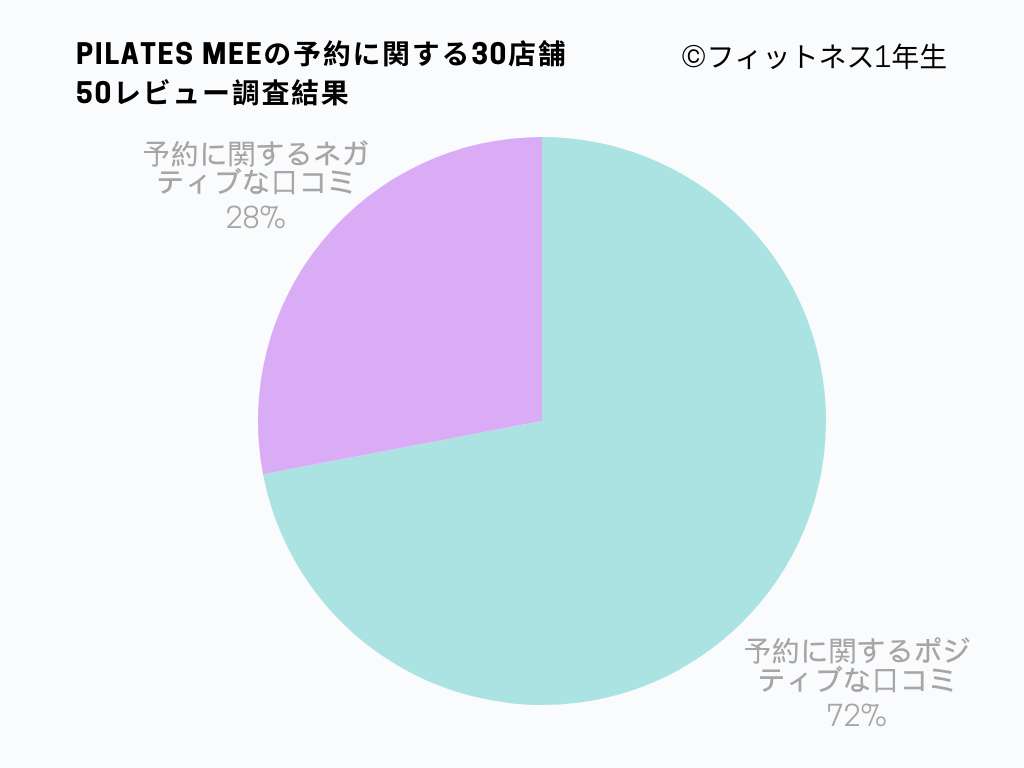 本記事では、当サイトが独自に調査した30店舗・口コミ50件のデータをもとに、Pilates Mee(ピラティスミー)の予約事情を客観的に分析しました。