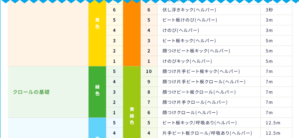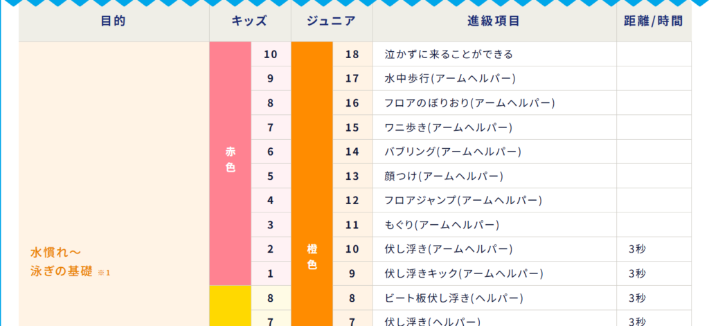 キッズスイマー:28段階