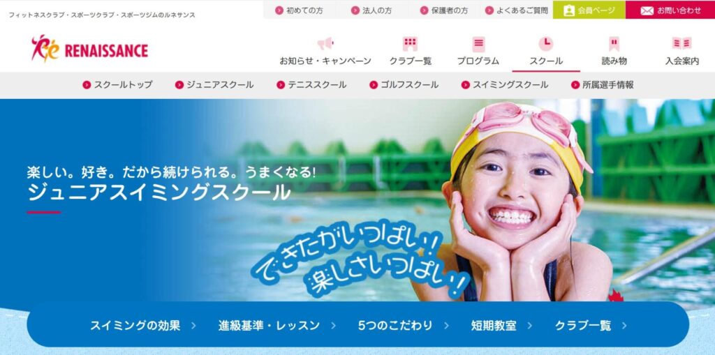| ルネサンスジュニアスイミング | エンジョイスイミングで「楽しい!」から自然上達!動画AIフィードバックが先進的 | 生後6か月~15歳 | 都内多数 (30店舗以上) |