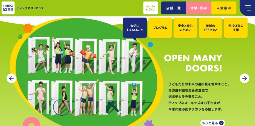 | ティップネスキッズ | スタディスイムで自ら学ぶデジタル指導!挑戦意欲と自主性を重んじる | 幼児〜15歳 | 都内15店舗 | 約8,000円~10,000円程度 ※週1回の場合 |