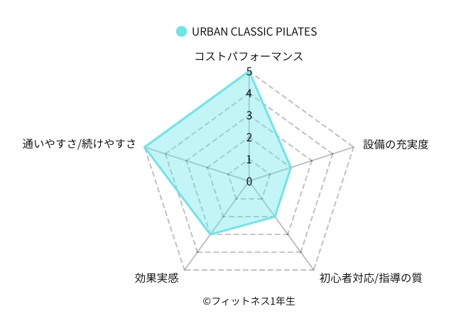 - アーバンクラシックピラティスの総合評価を5項目で採点!